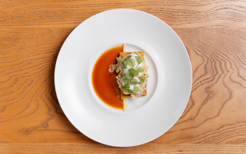 Waffle di granchio blu, uovo 63°, cavolo e ‘Nduja