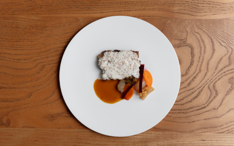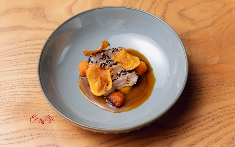 Tataki di salmerino alpino, zucca, ponzu e sesamo