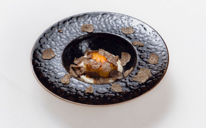 Ovetto Tamì al Tartufo Nero Su fonduta dei formaggi d’Alpeggio